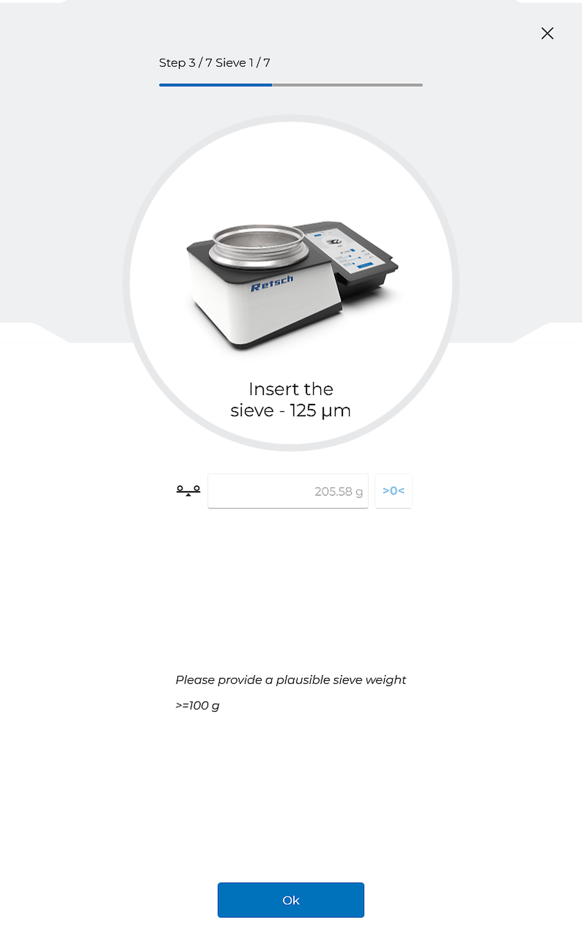 The “Weighing Assistant” exclusively can be used with RETSCH test sieves and can easily be activated/deactivated in the method.